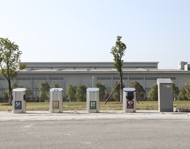 垃圾桶投料口位于地面上,工作裝置位于地下,可有效防止異味溢露且無視覺污染,景觀環(huán)保。